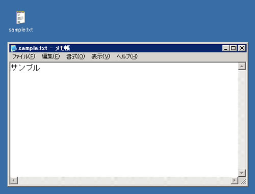 例として、デスクトップ上に存在する、『sample.txt』を暗号化します。