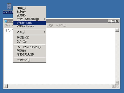 対象となるファイルを右クリックし、コンテクストメニュー内の『VPDisk Lock』を選択します。