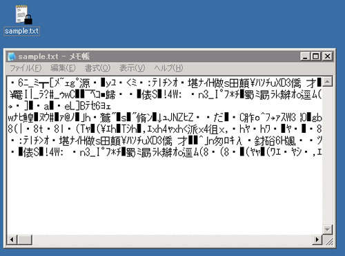 成功すると、アイコンに鍵のマークが表示され、ファイルの内容は全て暗号化されます。