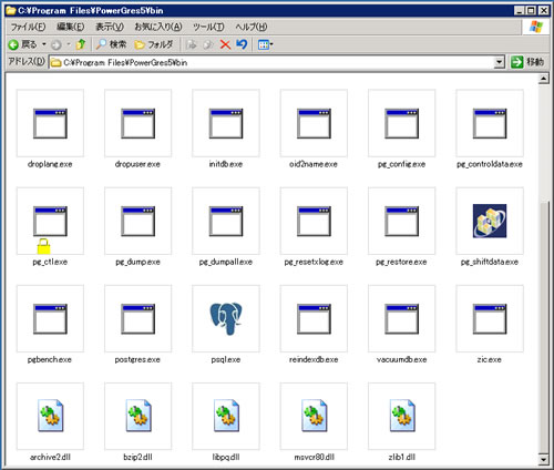 5.『pg_ctl.exe』のアイコンに黄色い鍵マークが表示されていることを確認します。